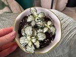 The 'All Time' Fittonia (Fittonia albivenis 'Network News All Time') is a compact, low-growing tropical houseplant, popular for its vibrant green leaves intricately veined with white. Ideal for tabletops or terrariums, it thrives in high humidity and bright, indirect light, reaching only 4-8 inches in height. They love to be consistently moist but never waterlogged!