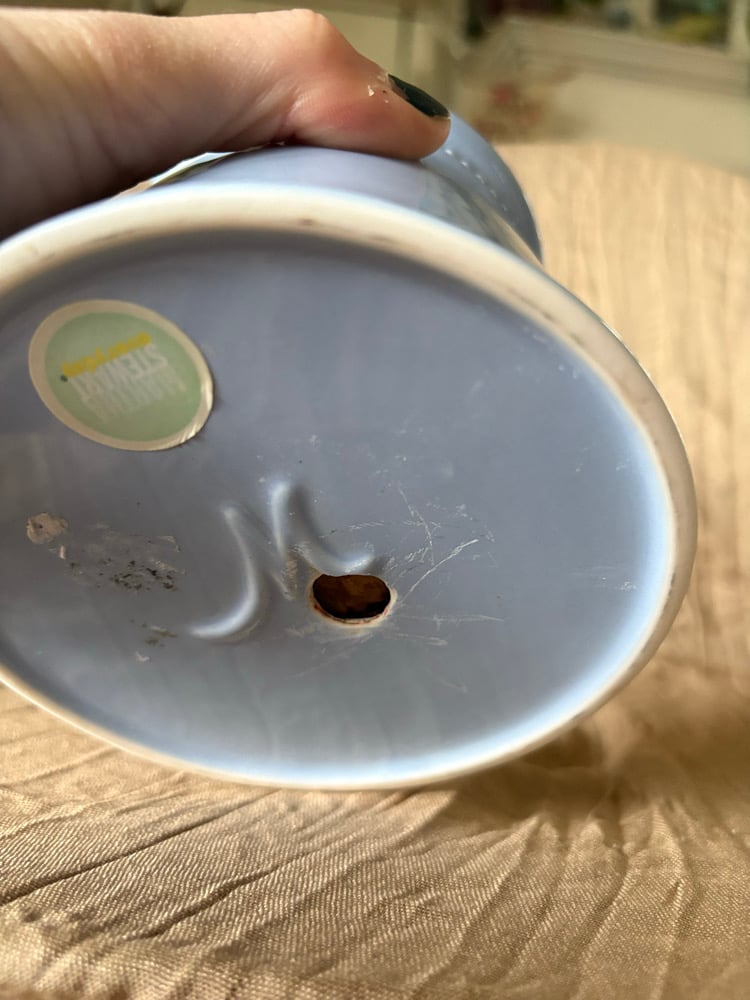 The exterior diameter of the plant opening is 4 inches, and horticultural charcoal was used for drainage. This plant is not toxic to humans or pets.