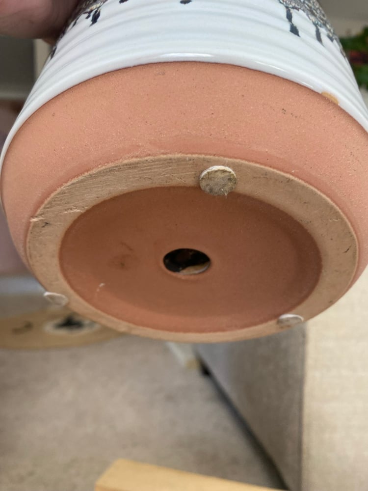 The exterior diameter of the plant opening is 6 inches with added drainage in bottom, and this plant is toxic to humans or pets if ingested!