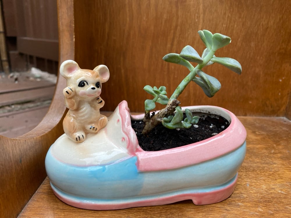 Ghost Echeveria in Mouse Pink & Blue Shoe
