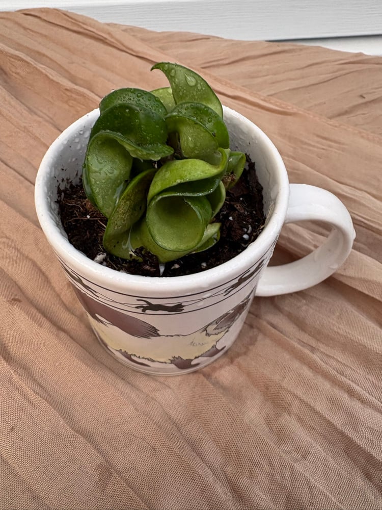 The Hindu Rope Plant (Hoya carnosa compacta) is a slow-growing, low-maintenance succulent vine that thrives indoors with bright, indirect light and infrequent watering. Plant in fast-draining, chunky soil within a pot with drainage, allowing it to dry out completely between waterings. It LOVES high humidity!