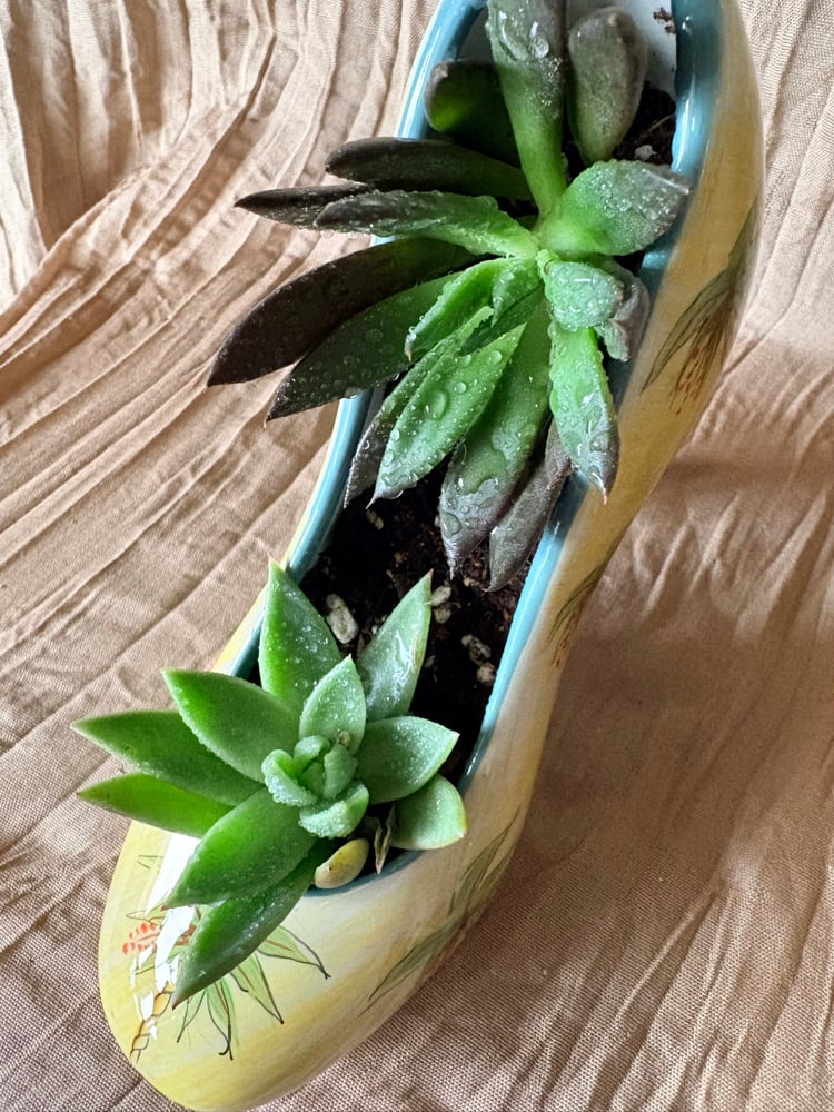 Look how fun! I really got creative with this one and felt these two succulents were the perfect duo for this sassy high heel!