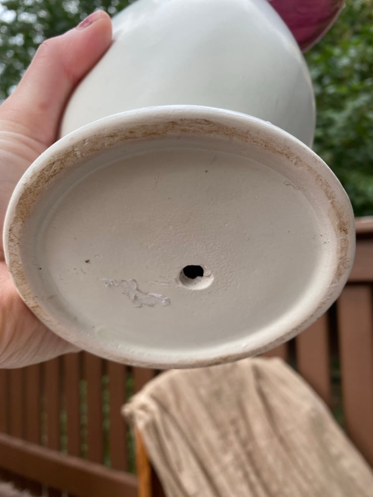 The exterior diameter of the plant opening is 4.5 inches and there is a drilled hole in the bottom for proper drainage.