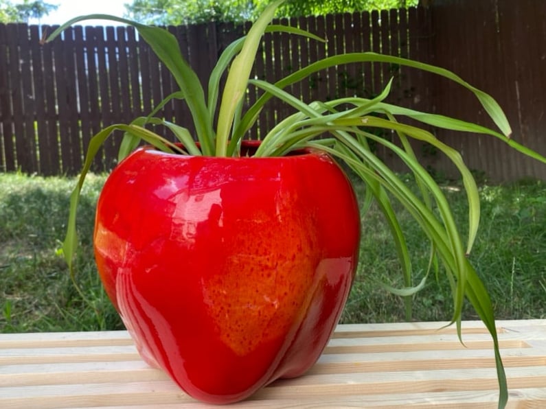 Spider Plant In Large Red Apple