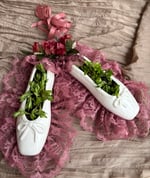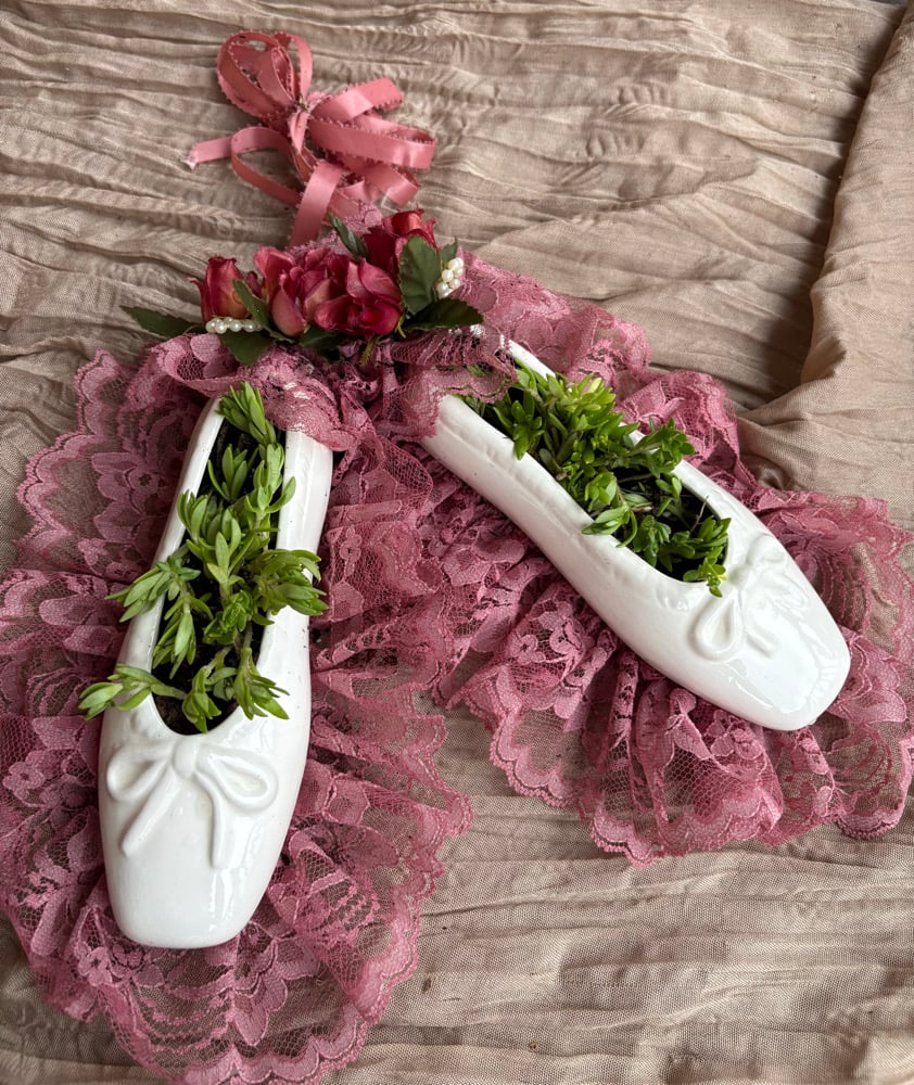 Both shoes are drilled for proper drainage. The exterior diameter of each shoe opening is 4.5 inches. This plant is midly toxic to humans or pets.